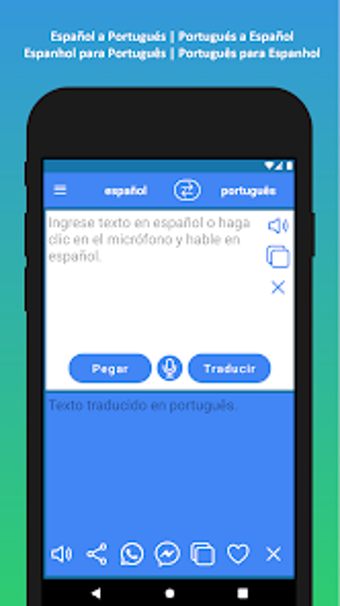 Belangrijke kenmerken zijn onder andere de mogelijkheid om de vertaalrichting te wisselen met een druk op de knop, en de optie om vertaalde teksten eenvoudig te delen via sociale media of andere applicaties. De app is ontworpen om snel en met een laag geheugenverbruik te werken, waardoor hij toegankelijk is voor een breed scala aan Android-apparaten. Deze applicatie is ideaal voor iedereen die regelmatig met de Spaanse en Portugese taal werkt.